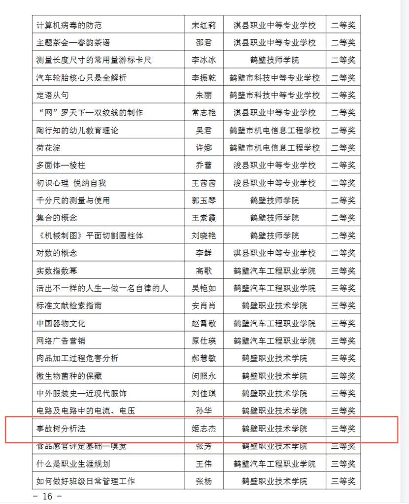 其中,王海瑞老师报送的课件《单向阀及应用》,紧密结合液压与气动技术课程核心,以清晰的逻辑结构、生动的动画演示和丰富的工程实例,将抽象的原理与具体的应用场景深度融合,荣获一等奖。姬志杰老师报送的课件《事故树分析法》,则聚焦于安全工程与风险管控领域,系统性地阐述了该分析方法的原理、步骤与应用,教学设计严谨,启发性强,荣获三等奖。两项获奖课件均体现了理实一体、学用结合的鲜明职教特色。